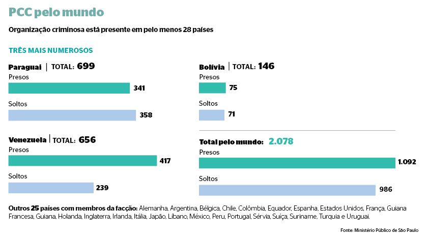 Conforme a pesquisa, são 699 integrantes do PCC em território paraguaio. Desses, 341 estão presos, mas 358 estão soltos. Os dados foram obtidos pelo Grupo de Atuação Especial de Combate ao Crime Organizado (Gaeco) paulista e apresentados no seminário internacional Crime Organizado e Mercados Ilícitos no Brasil e na América Latina.