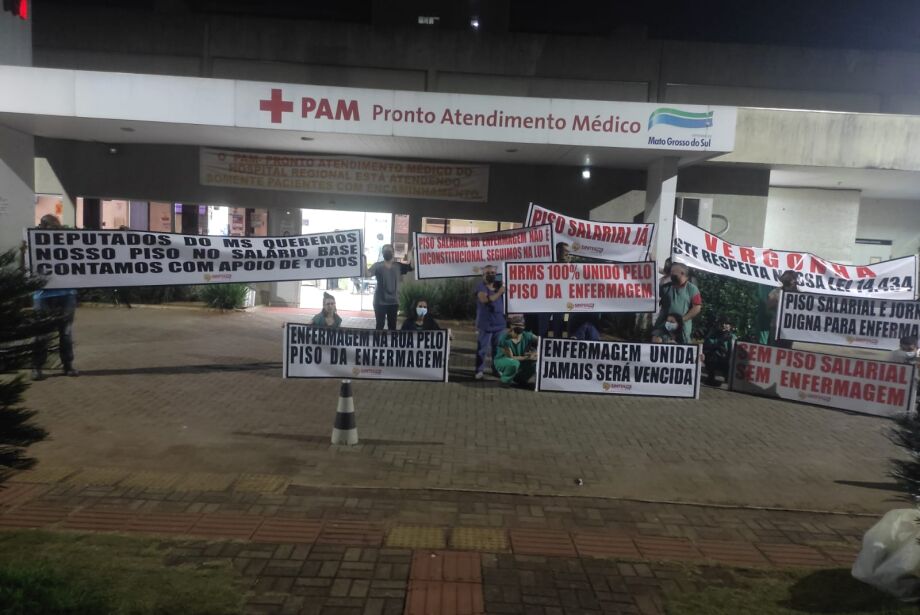 No Hospital Regional de Mato Grosso do Sul(HRMS) diversas manifestações organizadas pelos enfermeiros que trabalham no local foram feitas no contraturno dos funcionários, cartazes exigindo o comprimento da lei foram estendidos em frente ao hospital.