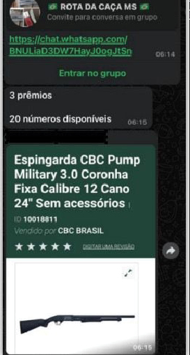 Até espingarda era rifada em grupo investigado pela políciaSomente em 2024, foram realizadas, pelo menos, 13 rifas de armas nesses grupos, que eram chamadas de “ações beneficentes”. O principal investigado por ser o possível “chefão” deste comércio ilegal é um técnico em enfermagem, que, inclusive, ostenta sua paixão pela caça em vídeos publicados no YouTube e em sua página no Facebook.