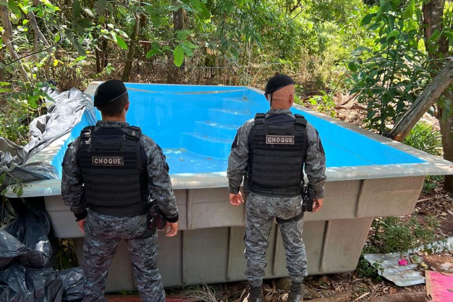 No local indicado, que se tratava de um imóvel com área de mata nos fundos, os policiais encontraram a piscina parcialmente coberta por uma lona preta e confirmaram se tratar do objeto furtado.