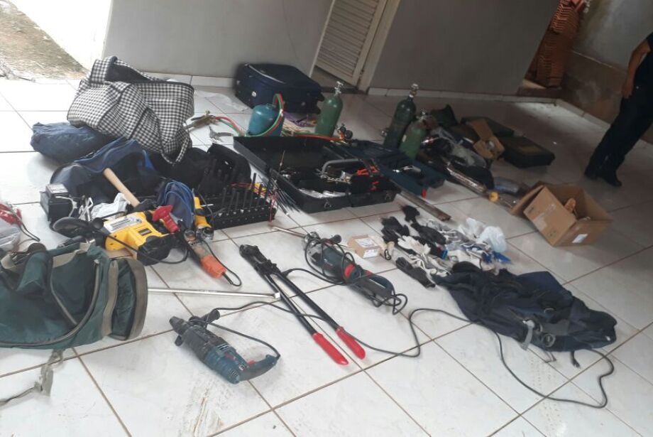 Na casa, foram encontrados vários materiais usados para o cometimento dos crimes. Foram apreendidos um carro, rádio comunicador, bloqueador de sinal, furadeiras, alicates, cilindros de gás, máquinas para corte de caixas eletrônicos e cofres, luvas, entre outros.