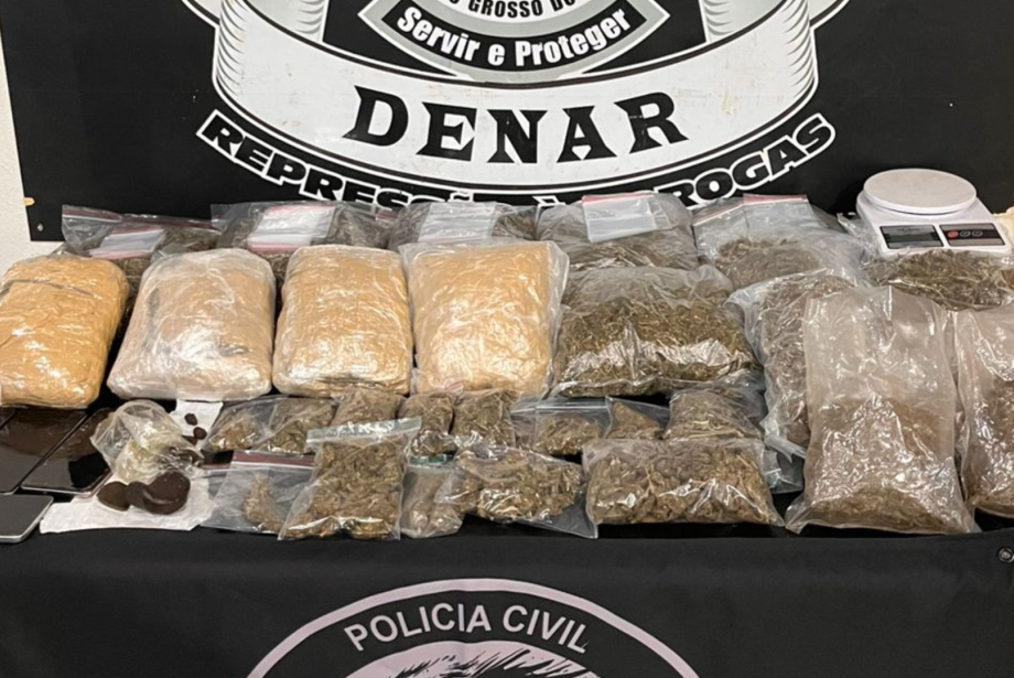 No endereço, a equipe da Denar localizou mais 2,92 quilos de maconha, além de duas balanças de precisão, e embalagens plásticas comuns para armazenamento de porções da droga.