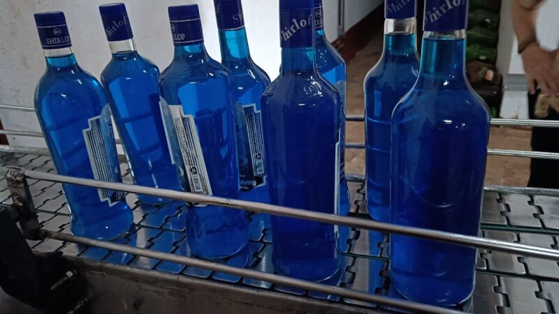 Segundo informações da equipe que esteve no local, as funcionárias estavam lavando garrafas e colocando novos rótulos, como “Vodka Shirlof – 900 ml – sh – 36% vol.”.