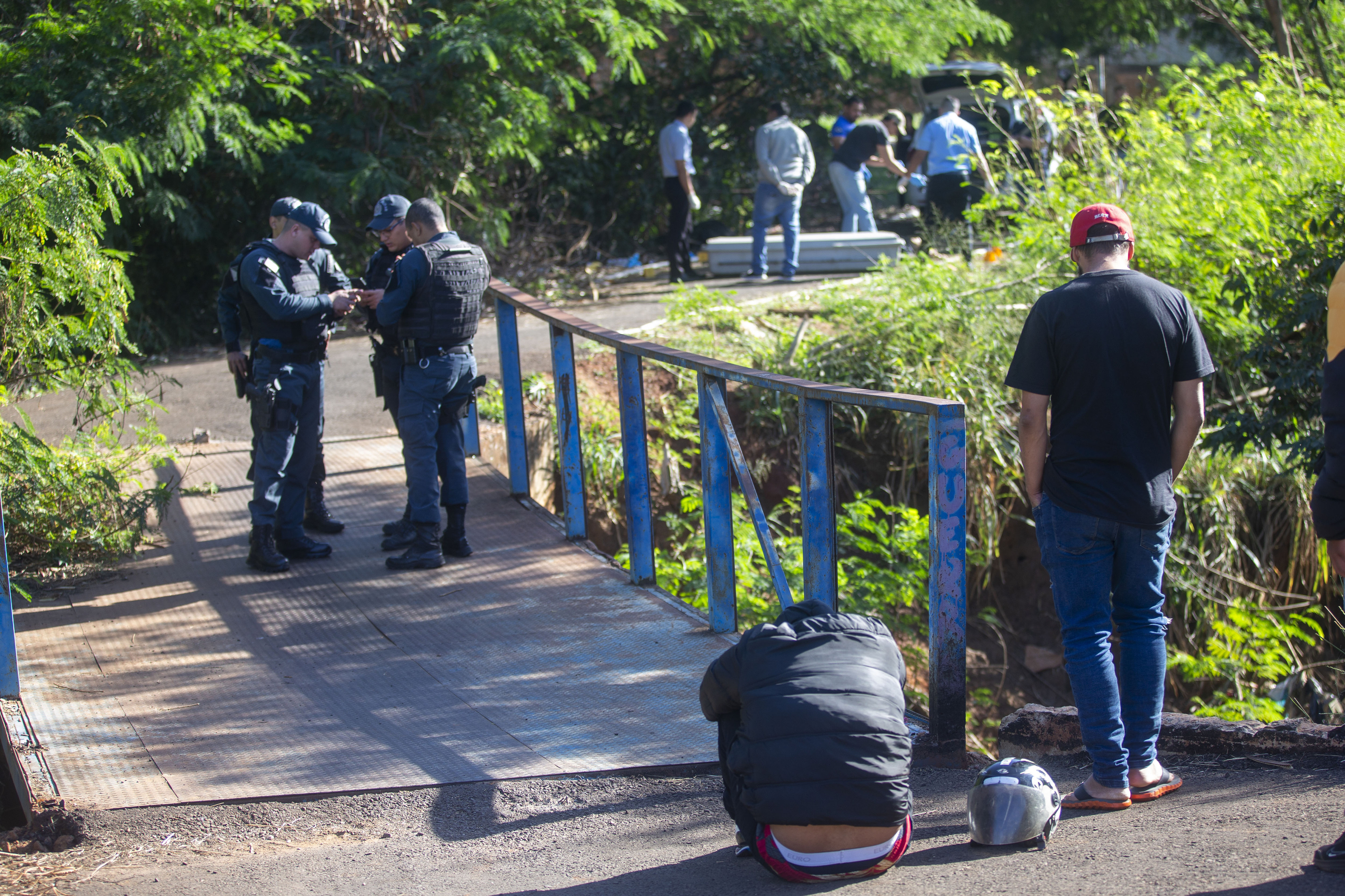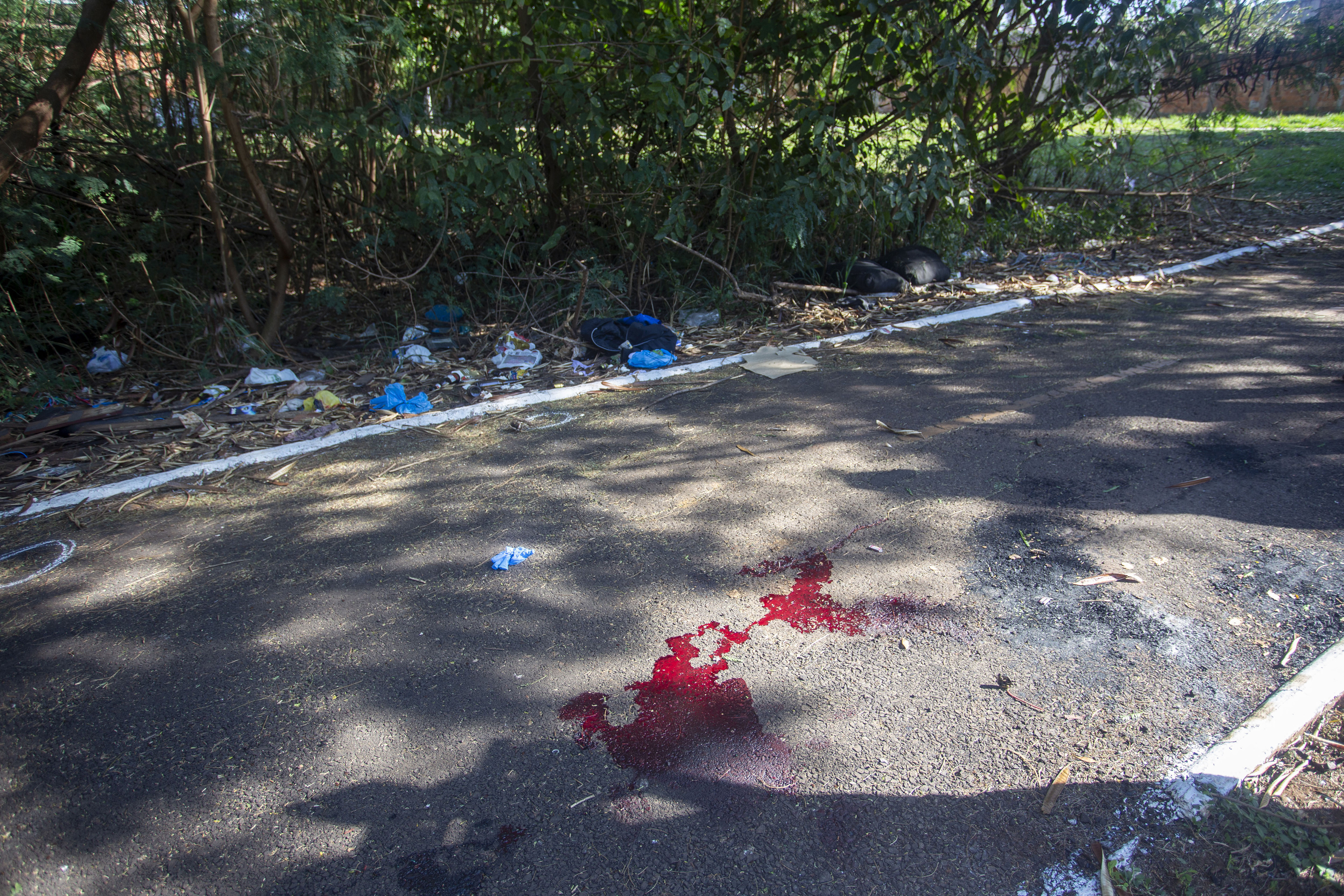 Próximo ao cadáver, foram encontradas três cápsulas de calibre 9 mm e manchas de sangue. O jovem estava de capacete, mas nenhuma moto foi encontrada próximo a cena do crime.
