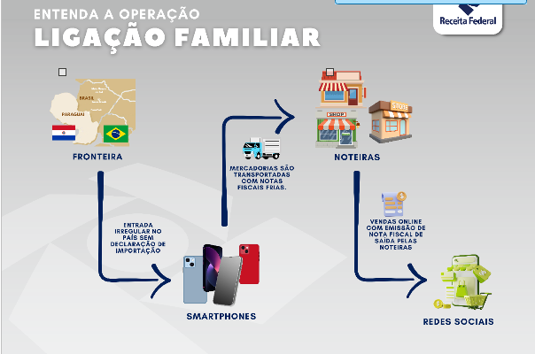 Em seguida, o eletrônico era transportado, com notas fiscais frias, da fronteira (Paraguai) até lojas de eletrônicos em Campo Grande (MS) e Ribas do Rio Pardo (MS).