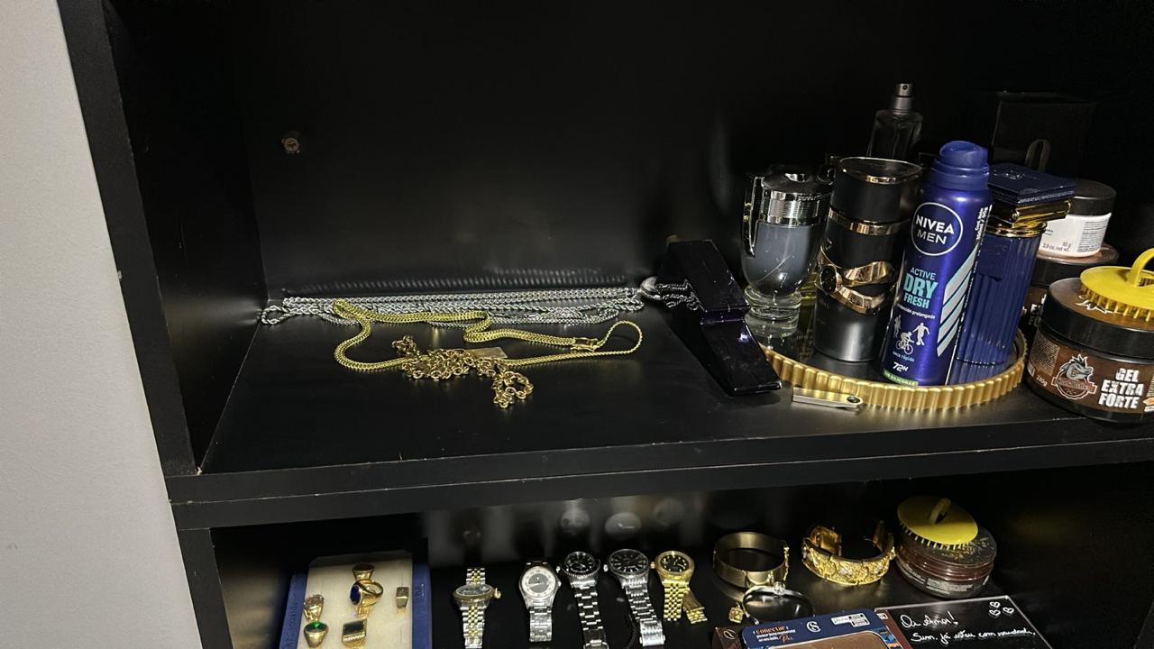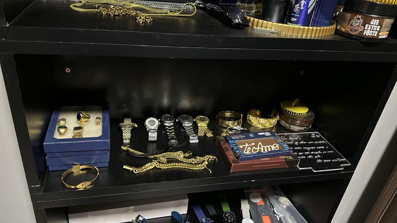 Na ação, os agentes arrombaram um cofre na loja Gold Imports e encontraram quatro iPhones e uma arma calibre 9 mm registrada.