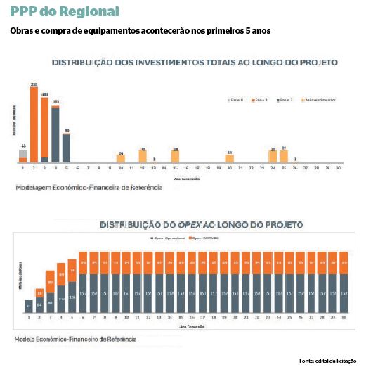 Ainda sem data confirmada, a licitação prevê que, entre despesas com novas estruturas e equipamentos e o valor operacional previsto por mês para a manutenção do Reginal, a empresa deverá investir R$ 5,6 bilhões nos 30 anos de concessão.