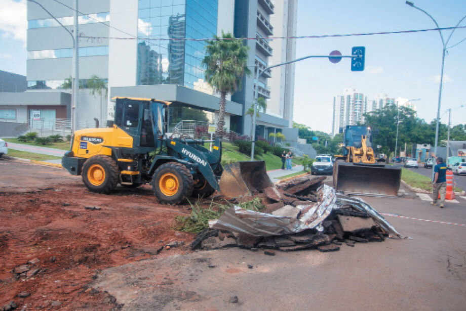 Máquinas da prefeitura estiveram ontem na região da Avenida Rachid Neder para começar os trabalhos de recomposição do asfalto - Foto: Marcelo Victor/Correio do EstadoConforme a engenheira da Sisep, Débora Barbosa, a via precisará passar por um processo completo de reconstrução da base antes da aplicação de nova capa asfáltica.