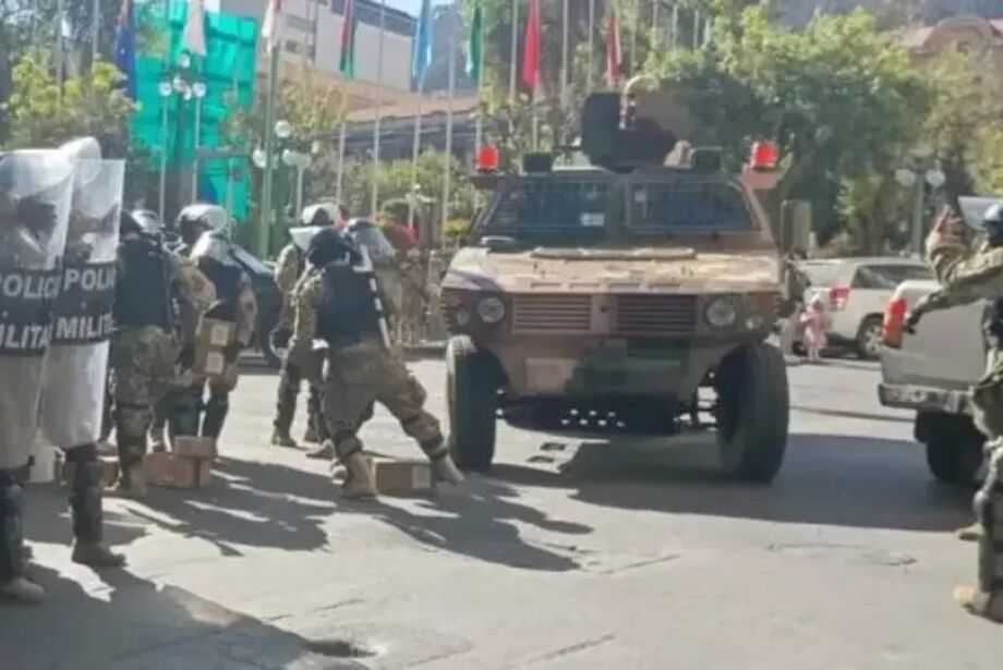 En este momento se despliega personal de las Fuerzas Armadas y tanquetas en la Plaza Murillo.