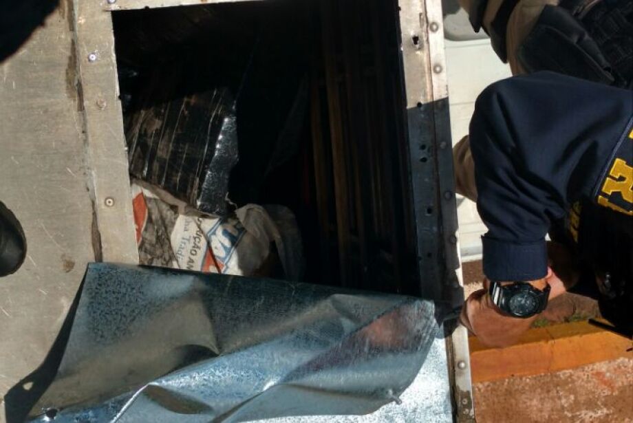 Homem de 42 anos foi preso depois de ser flagrado transportando 785 quilos no fundo falso de um caminhão baú, na tarde de hoje, na BR-163, em Campo Grande.