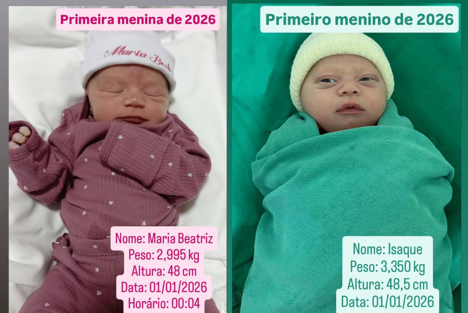 Campo Grande começou 2026 com duplo motivo para comemorar. Exatamente aos quatro minutos do novo ano, às 0h04 desta quinta-feira (1º), nasceram os dois primeiros bebês de 2026 na Capital, uma menina e um menino, em partos realizados praticamente ao mesmo tempo.