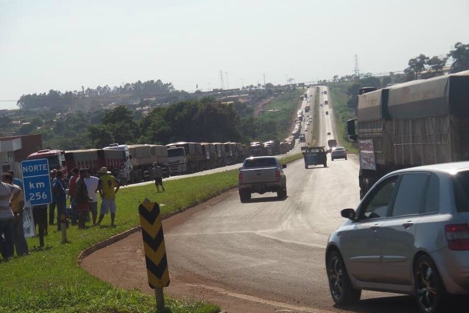 Caminhoneiros que iniciaram protesto contra o constante aumento do diesel nesta segunda-feira em Dourados (MS) vão bloquear a passagem apenas de veículos carregados com carga de grãos. Um acampamento foi montado na região conhecida como “Trevo da Bandeira”, entroncamento entre a BR-163 e BR-463, rodovias que dão acesso a todas as regiões do país.