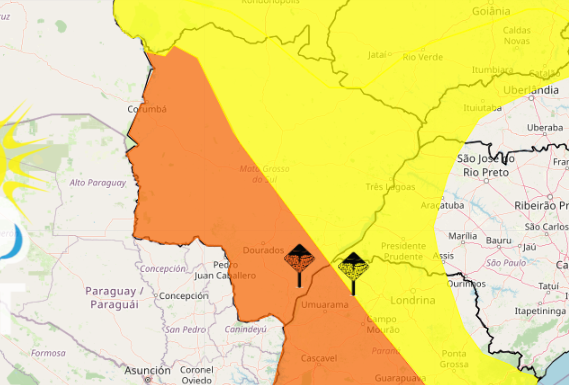 MS em alerta laranja e amarelo para tempestades / Fonte: Inmet
