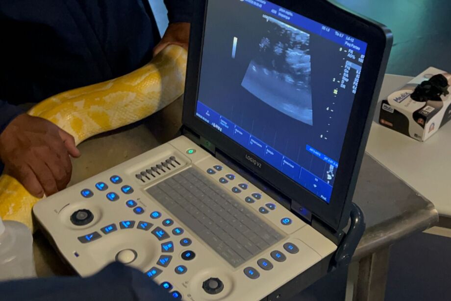 Serpente albina do Bioparque Patanal, Capitu faz "check-up" e ultrassom