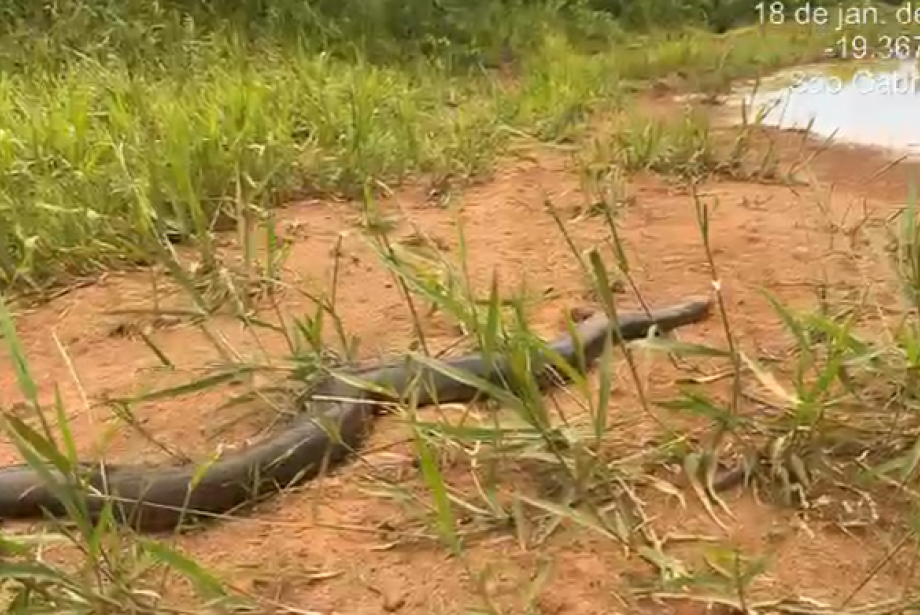 A Polícia Militar Ambiental (PMA) atendeu a um chamado em que uma serpente da espécie sucuri-verde (Eunectes murinus) entrou em uma propriedade privada, em São Gabriel do Oeste.