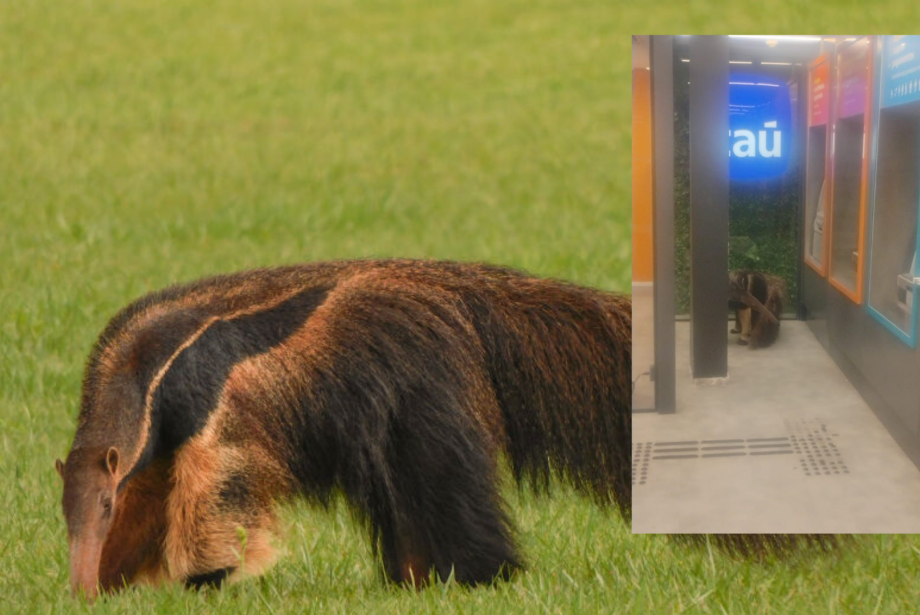 Uma cena inusitada chamou a atenção de clientes que precisaram usar os serviços da agência bancária do Itaú, na noite de sexta-feira (30), e acabaram se deparando com um tamanduá-bandeira adulto (Myrmecophaga tridactyla), em Campo Grande.