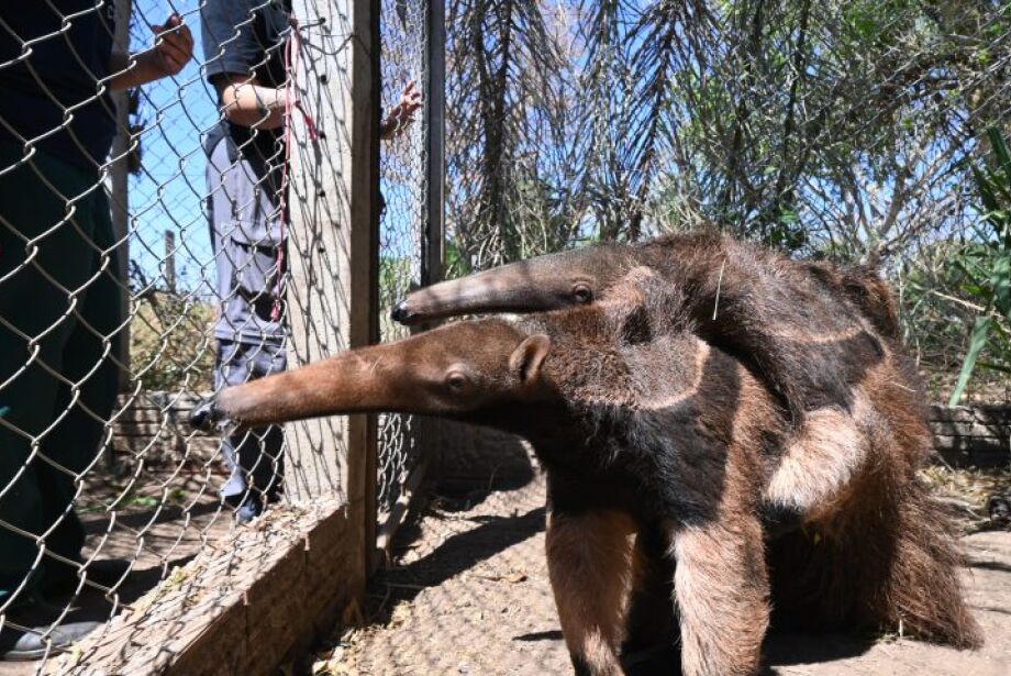 Dois filhotes de tamanduá-bandeira foram transferidos pelo Instituto de Meio Ambiente de Mato Grosso do Sul (Imasul) para uma área de adaptação no Instituto Tamanduá, em Aquidauana, após cumprirem uma bem-sucedida etapa de reabilitação no Centro de Reabilitação de Animais Silvestres (CRAS).