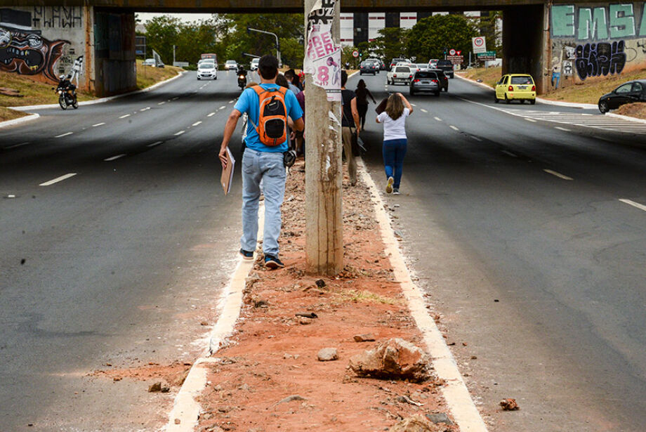 No Distrito Federal, Mario Bala usou de ironia ao manifestar sua opinião a respeito das condições para os pedestres na cidade de Ceilândia: