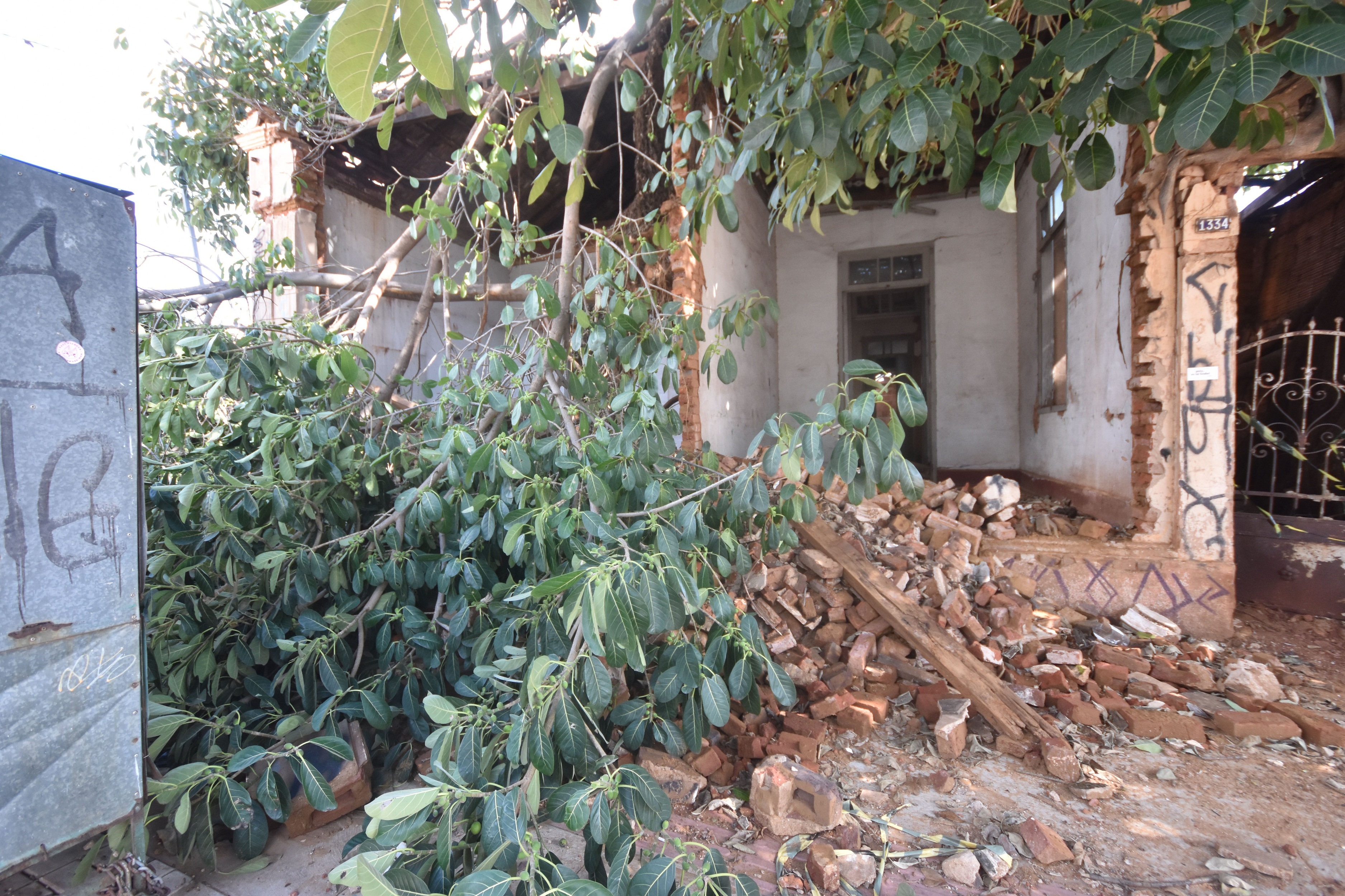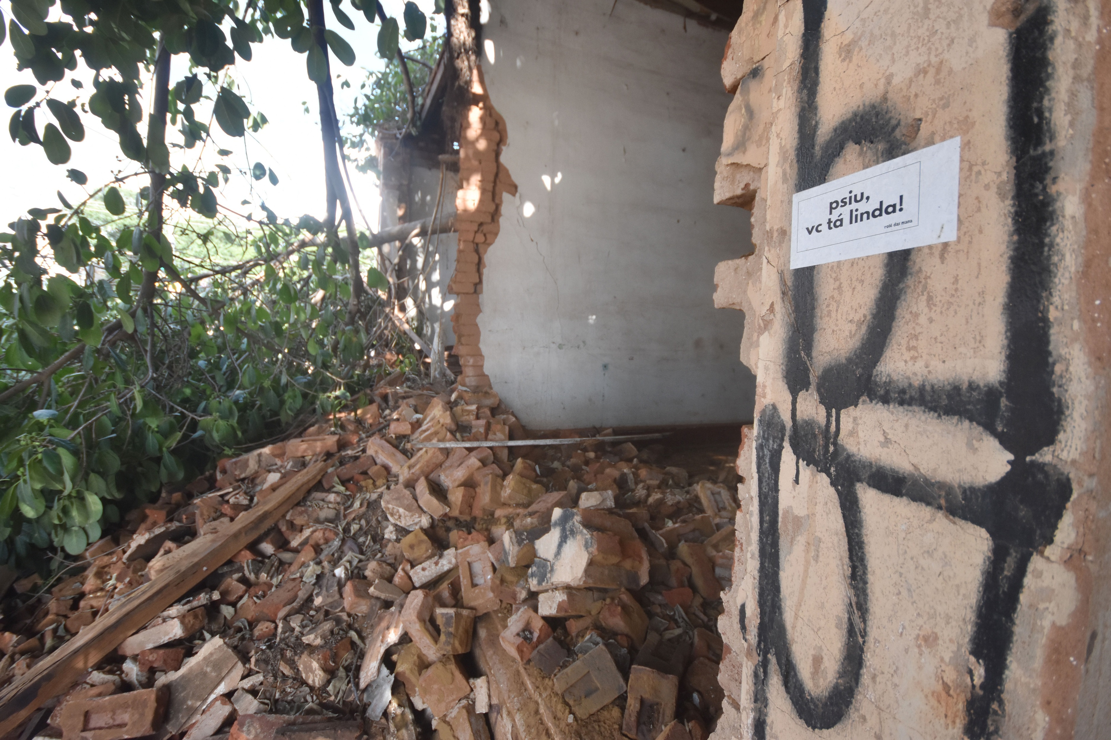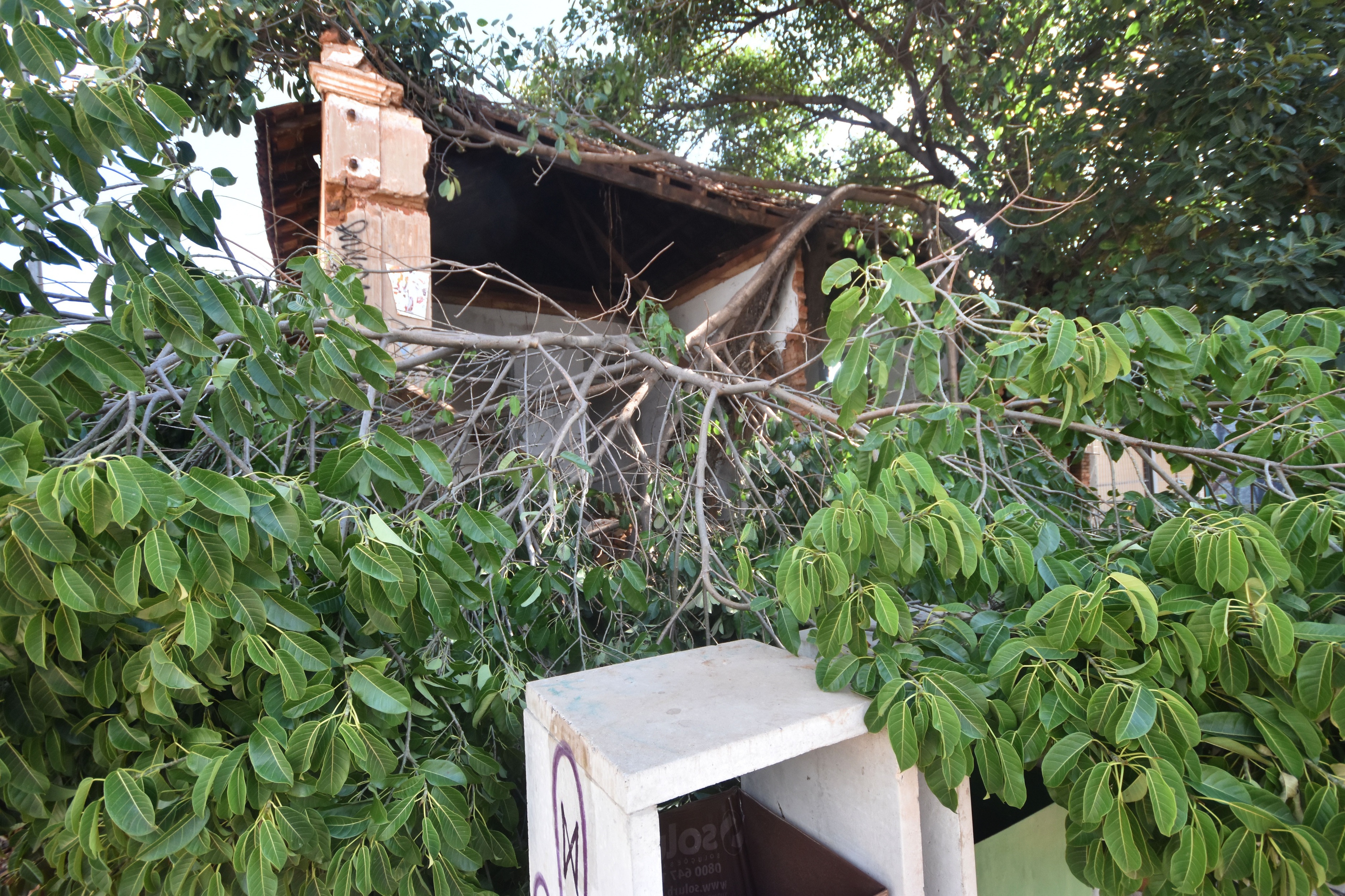 Entre colagens e pichações, a estrutura se esconde na Capital, encoberta mais recentemente também por por queda de galhos, que se desprenderam da árvore de sua calçada e agora compõem a paisagem negligenciada.