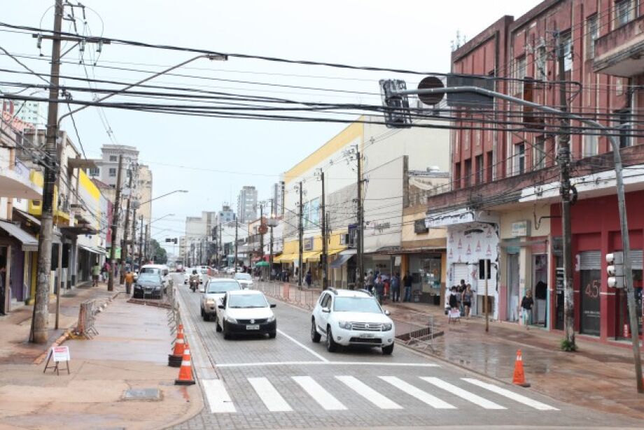 Em cinco meses de atividades, já foram realizados 35% da obra, conforme dados da Engepar, responsável pelos serviços. Nesta quinta-feira (22), mais uma quadra foi liberada para o tráfego. No trecho entre as ruas Marechal Rondon e Dom Aquino, foram feitos o piso intertravado, as canaletas, drenagem, rede de esgoto e foram instalados os dutos e as caixas elétricas e de telefonia.