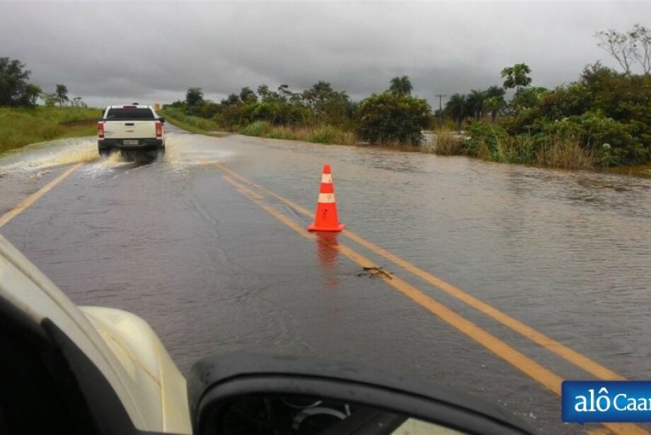 Trecho da BR-163 é parcialmente interditado depois de rio transbordar