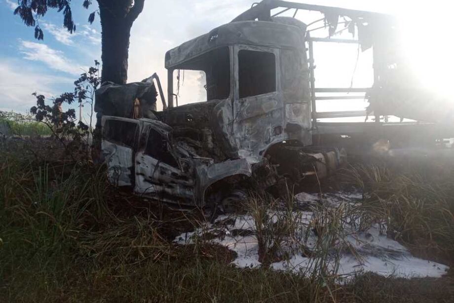 Os Bombeiros atuaram no resgate dos corpos e contenção das chamas que atingiram a carreta e se propagaram para a vegetação circundante, aumentando a complexidade do problema.