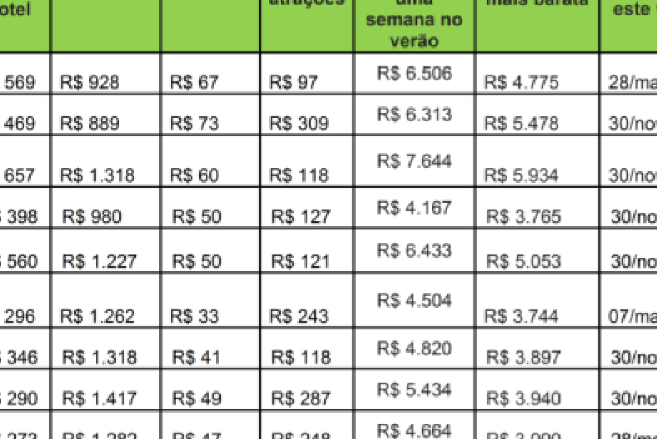 O TripAdvisor®, maior site de viagens do mundo*, revela os 10 destinos domésticos mais populares entre os viajantes brasileiros para o período de 1º de novembro de 2015 a 31 de março de 2016. O levantamento inclui também o preço médio de uma viagem de uma semana com os valores de hospedagem, passagem aérea, refeições e atrações. Os dados também ajudam os viajantes a descobrirem os melhores preços nesses destinos ao revelar qual é a semana mais barata para visitá-los.