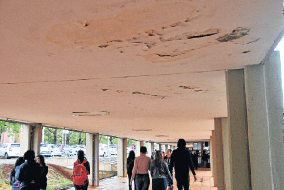 A reportagem do Correio do Estado esteve na universidade nesta segunda-feira e encontrou banheiros interditados, goteiras nos corredores e infiltrações até mesmo dentro das salas de aula.