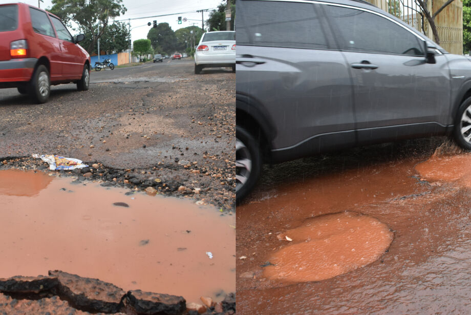 Buracos na Rua Bernardo Franco Baís desafiam motoristas que transitam pela Vila Carvalho - Foto: Gerson Oliveira / Correio do EstadoPERCEPÇÃO