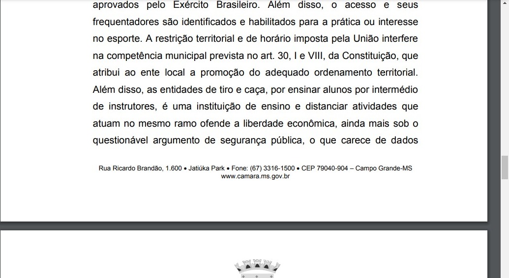 Conforme o exposto, a restrição de localidade e horário de funcionamento ditados pela União interfere na competência municipal de legislar sobre o assunto. No entanto, o vereador aponta que esses locais ainda estarão sob a vistoria do Exército Brasileiro como também da Secretaria Municipal de Meio Ambiente e Desenvolvimento Urbano (Semadur).
