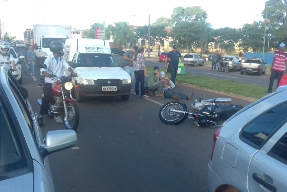 Motociclista vítima de acidente entre carro e moto na tarde de hoje (13) na Avenida Guaicurus aguardou por socorro durante 20 minutos. Detalhe que intrigou moradores da região foi o fato do acidente ter acontecido em frente a Unidade de Pronto Atendimento (UPA) Universitário.