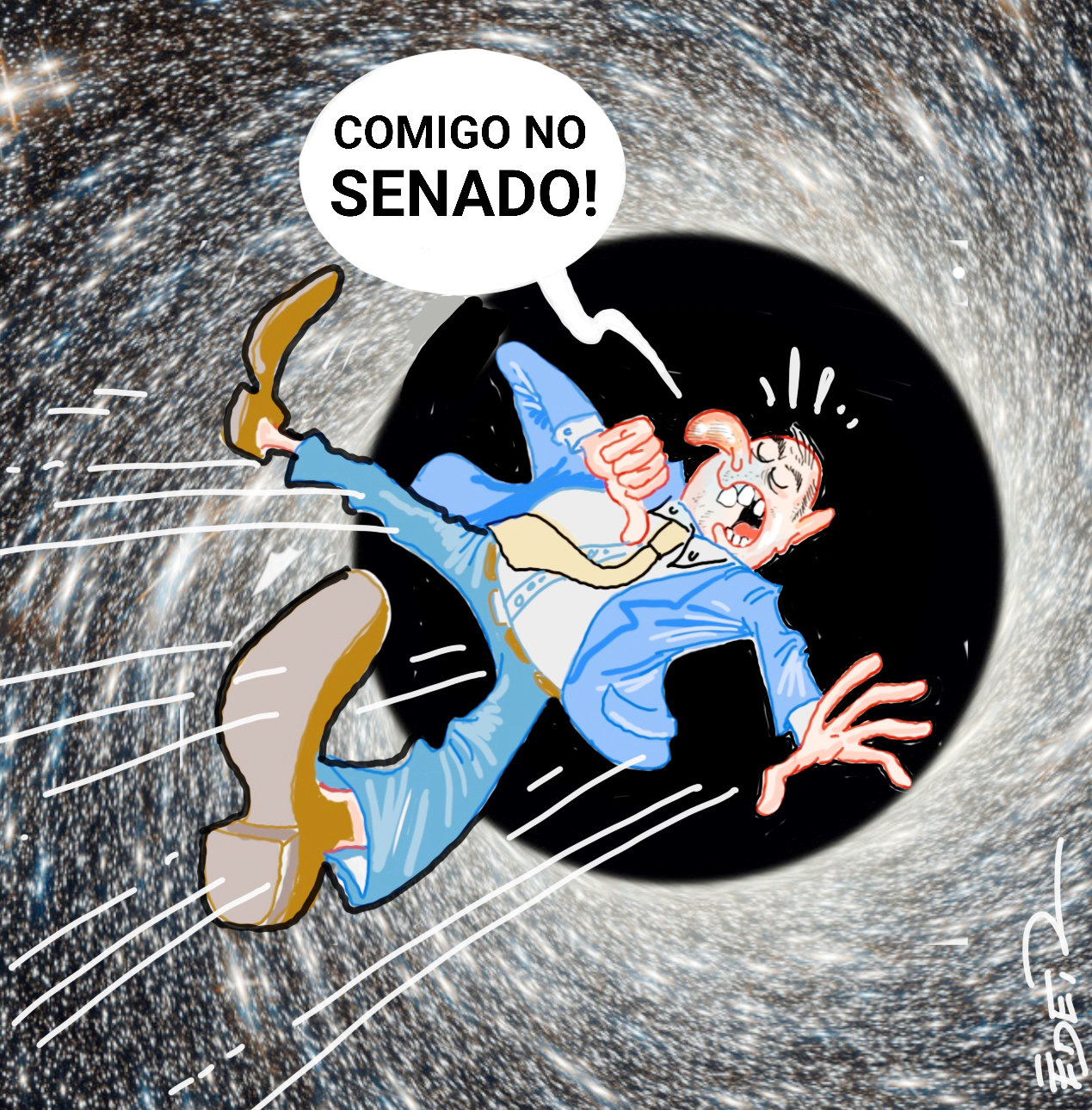 A ironia política está célere que só nos bastidores, diante da posição de figurinha que se diz um dos muitos pretendentes a vaga ao Senado. Por conta de sua manifestação, há quem esteja dizendo que seu slogan de campanha poderia ser “Comigo no Senado”, lembrando que ele acredita que basta apenas colocar a culpa nos “fenômenos climáticos” para continuar lépido e fagueiro com o sonho de ser “ungido” pelo seu partido. Só que sua pretensão, afirmam, está caindo no “buraco negro”... Afinal...