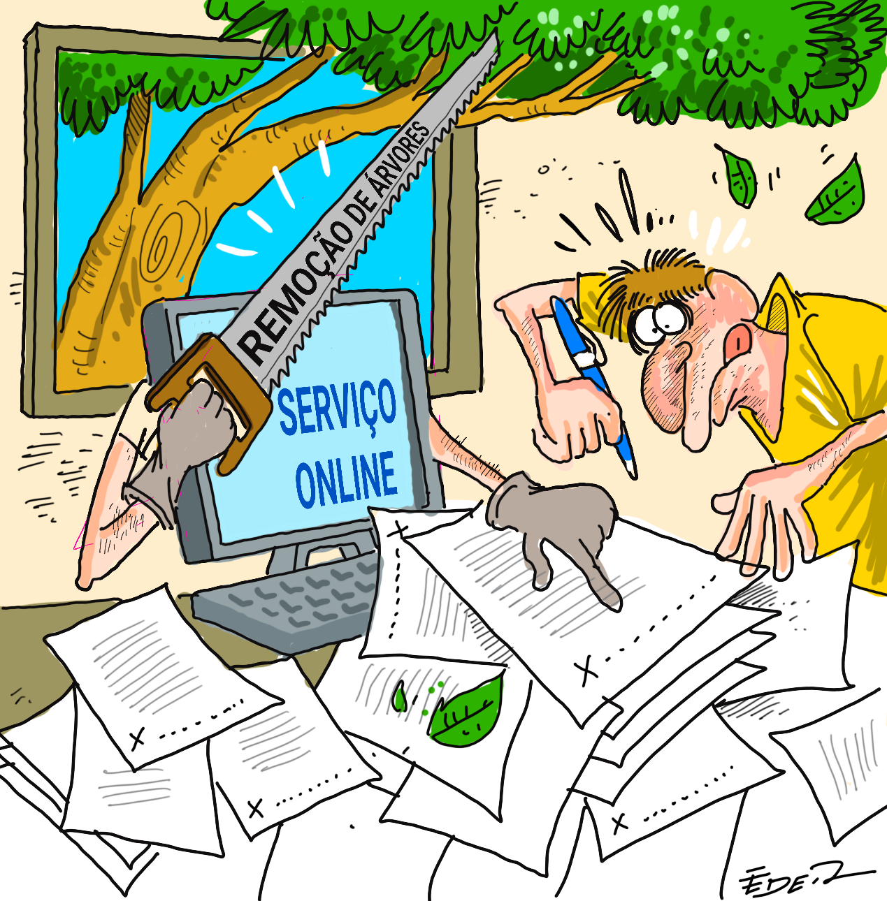 A Prefeitura de Campo Grande anunciou, com pompas e circunstâncias, que, a partir de agora, há o serviço on-line para remoção de árvores, para facilitar a vida do cidadão. O que chama atenção, porém, é o excesso de burocracia a ser obedecido por quem quiser utilizar o serviço do digital. Para tirar árvore em passeio público, por exemplo, é preciso enviar e-mail com “pancada” de documentos e requerimento que deve ser obtido em endereço eletrônico específico; se a dita-cuja estiver dentro do imóvel, mais requerimento. Se isso é facilitar...