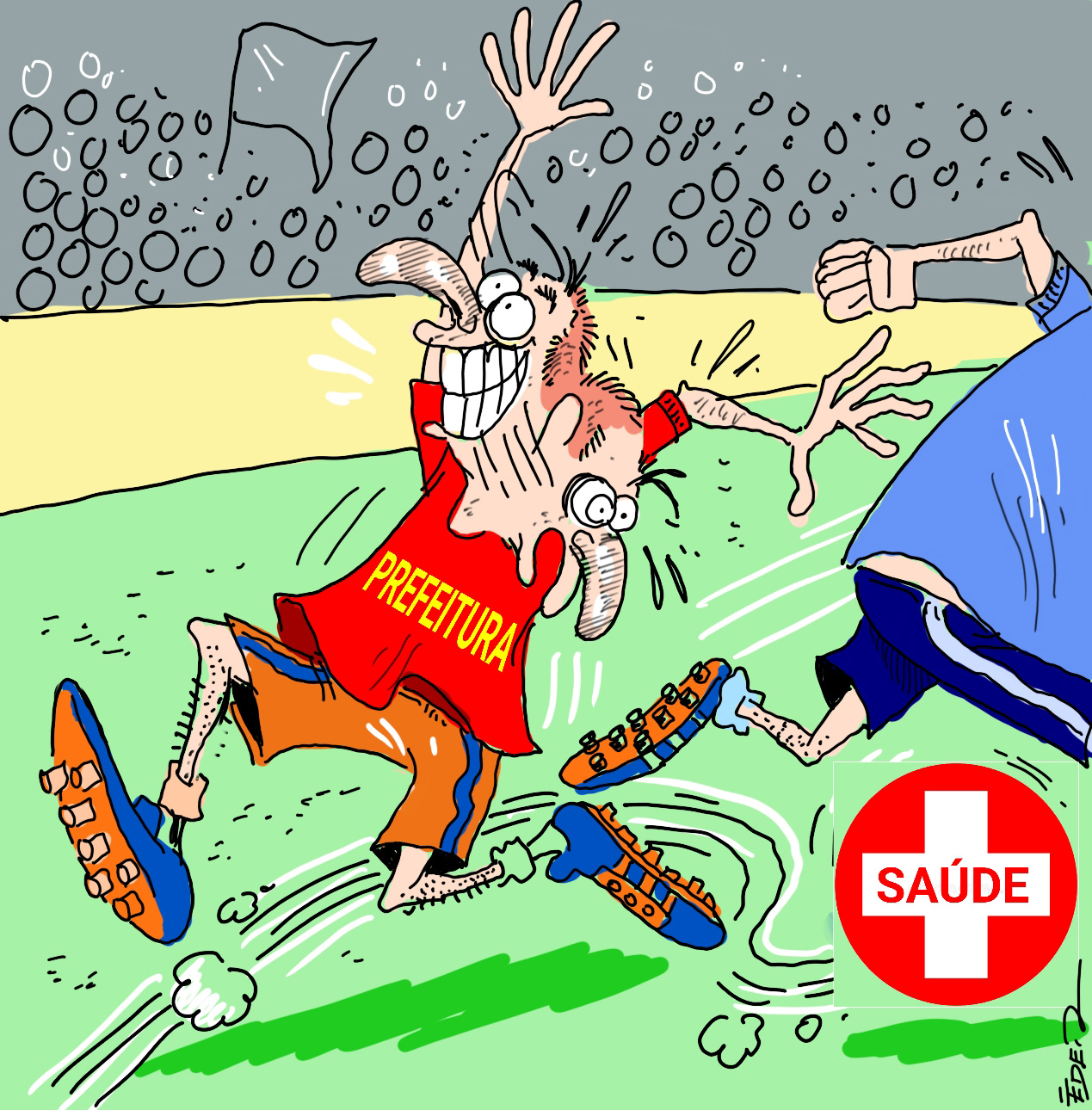 A terceirização da saúde que vem sendo discutida em Campo Grande está parecendo clássico de futebol, com torcida organizada e tudo, e com os olhos da população, atentos para saber quem conquistará a vitória. De um lado, a Prefeitura de Campo Grande tentando convencer que a sua jogada é a melhor para as necessidades das pessoas e do outro os dribles são ainda maiores. Enquanto isso, os dois lados jogam para a plateia, o caos vai se instalando fora dos gramados, com o setor enfrentando momentos de extremas dificuldades. Seria cômico, se não fosse trágico.