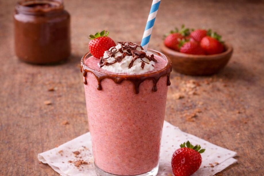 Comece misturando todos os ingredientes em um liquidificador até obter uma consistência cremosa. Decore a borda do copo com o creme de avelã, despeje a bebida, finalize com o chantily no centro, acrescente mais creme de avelã a gosto. Sirva em seguida.