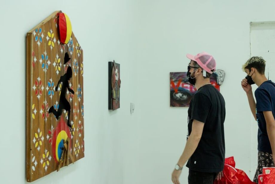 “Esses trabalhos que estão na exposição foram feitos durante a pandemia, têm alguns mais próximos de experimentações, em que eu mesclo bastante esse trabalho urbano com o institucional. No caso dessa exposição, também utilizei materiais que encontrei durante o meu trabalho na rua, como resto de azulejo”, indica.