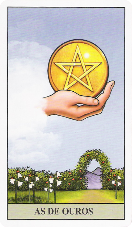 Assim, o Ás de Ouros é a semente do que pode florescer nas áreas mais concretas da vida: trabalho, finanças, corpo físico e tudo aquilo que se manifesta de forma prática e palpável.