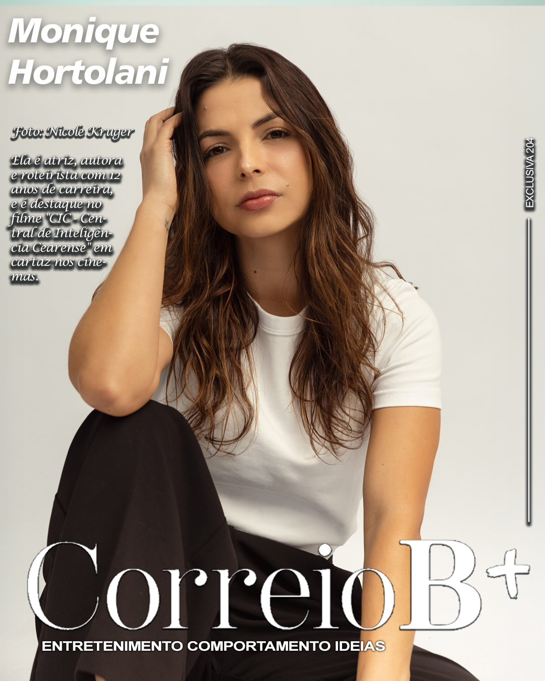 A atriz Monique Hortolani é capa exclusiva do Correio B+ desta semana - Foto: Nicole Kruger - Diagramação: Denis Felipe - Por: Flávia Viana CE - Monique você está em cartaz nos cinemas com o filme “CIC – Central de Inteligência Cearense”. Conte sobre esse trabalho e sobre a dobradinha com Halder Gomes, diretor do projeto com quem você já trabalhou antes.