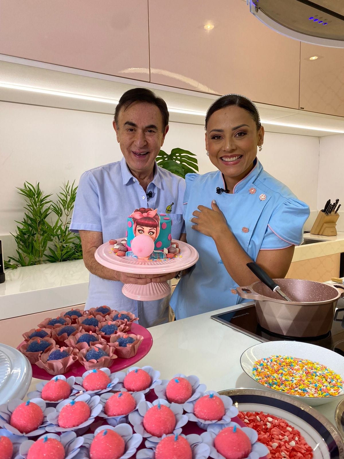 Mari em gravação com a apresentador Amaury Jr - Foto: DivulgaçãoCE - Como é conciliar a vida de empresária, mãe, Chef...