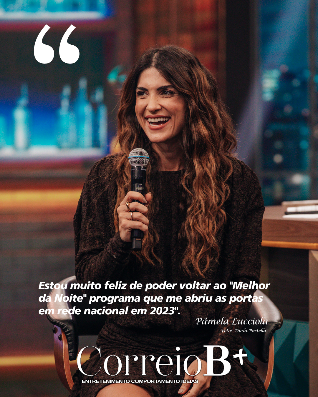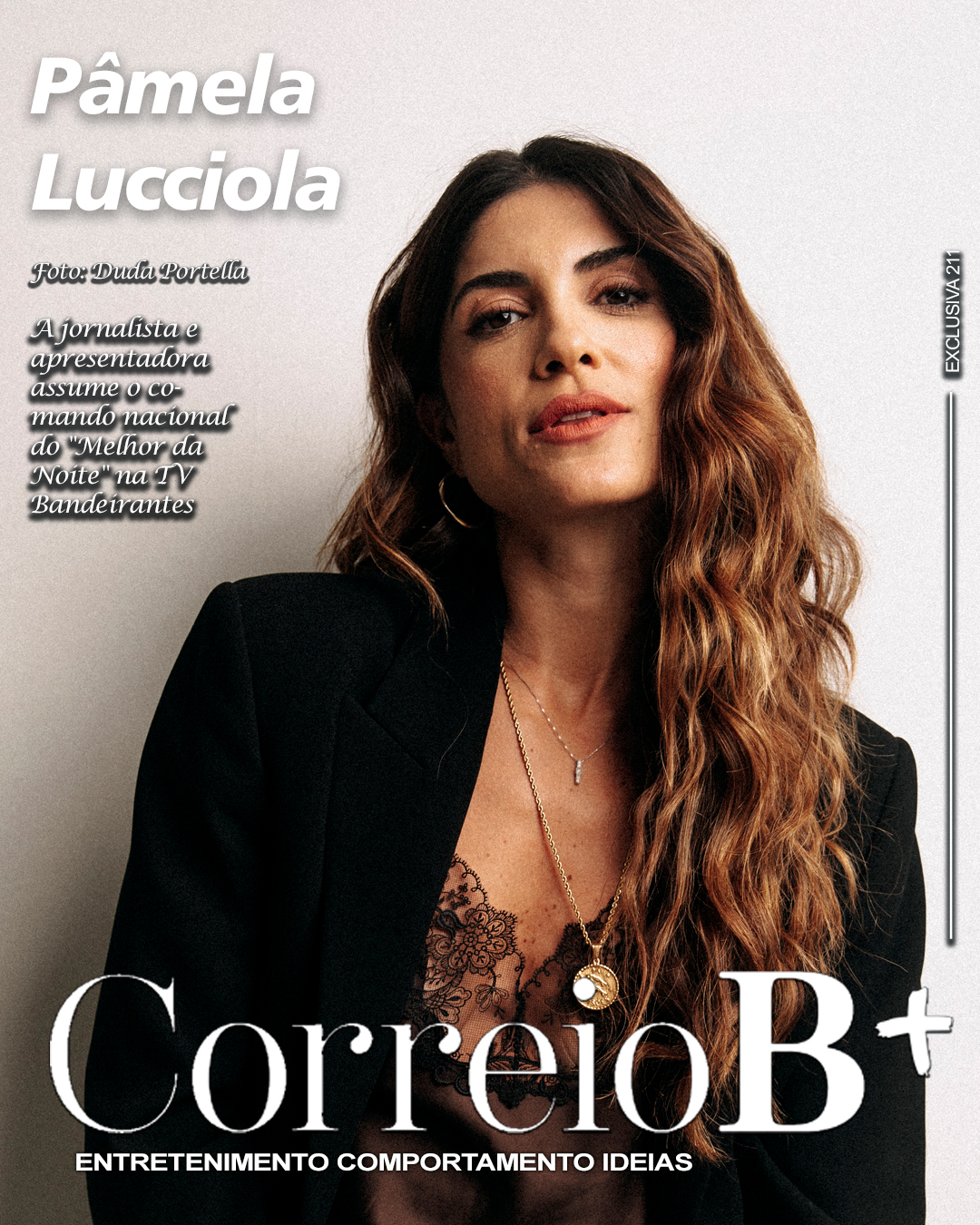 A jornalista e apresentadora Pâmela Lucciola é a Capa exclusiva do Correio B+ desta semana - Foto: Duda Portella - Diagramação: Denis Felipe - Por: Flávia VianaCE - Pâmela, você tem uma trajetória sólida na TV e agora assume o comando do “Melhor da Noite”. Como tem sido esse momento de transição e o que o público pode esperar dessa nova fase?