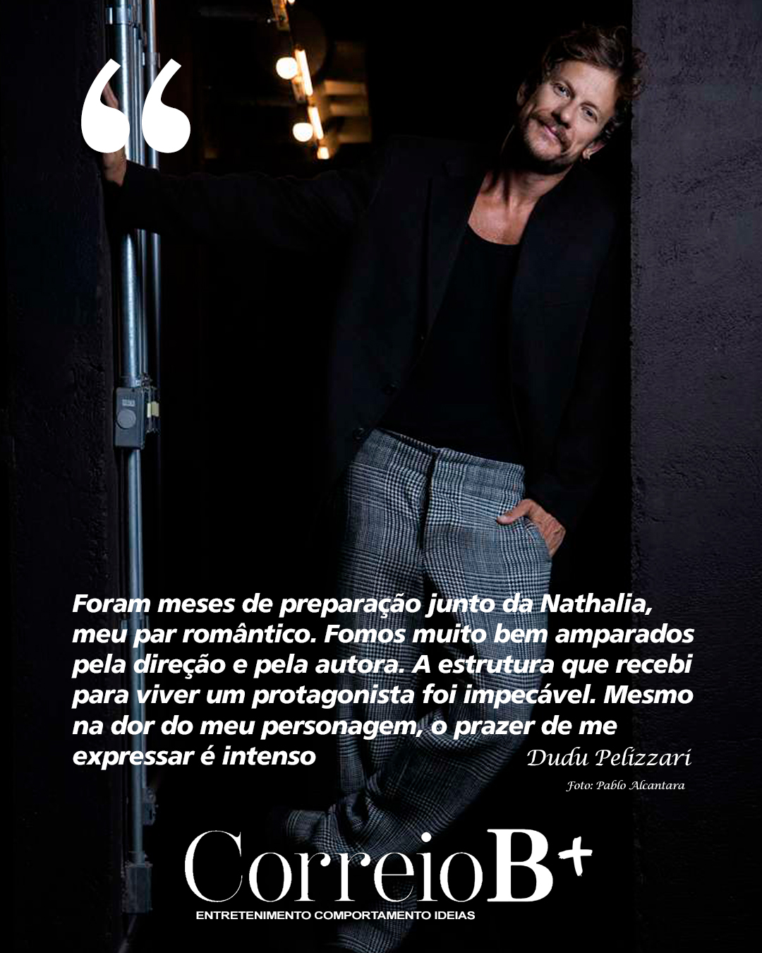“Foram meses de preparação. Junto da Nathalia, meu par romântico, fomos muito bem amparados pela direção e pela autora. A estrutura que recebi para viver um protagonista foi impecável. Mesmo na dor do meu personagem, o prazer de me expressar é intenso”, conta Dudu.