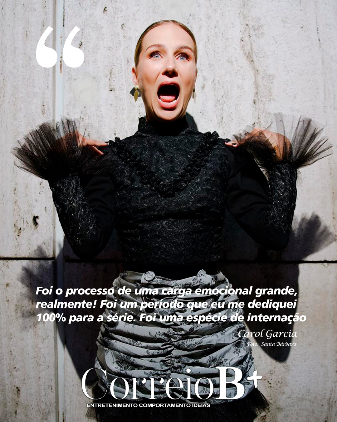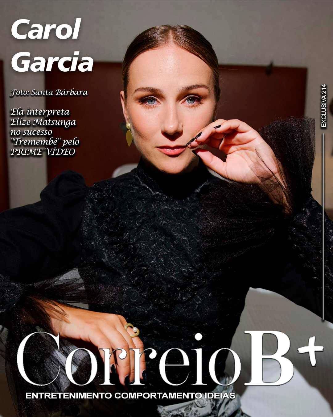 A atriz Carol Garcia é a Capa exclusiva do Correio B+ desta semana - Foto: Santa Bárbara - Diagramação: Denis Felipe - Por: Flávia VianaCE - Na série Tremembé você dá vida à Elise Matsunaga, uma personagem superintensa e cheia de camadas. Como foi se preparar emocionalmente e tecnicamente para este trabalho?