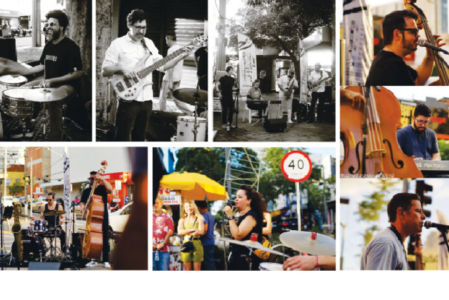 No primeiro dia de festival, o esquema mudou do Terminal Bandeirantes para a Rua Barão do Rio Branco, bem próximo à esquina com a Rua 14 de Julho, em frente à boutique Le Moulin. Bianca Bacha (vocais), Gabriel Basso (contrabaixo), Ana Ferreira (teclados), Adriel Santos (bateria) e Junior Matos (sax) comandaram o som, pilotando desde “Take Five”, “Take the ‘A’ Train” (quase uma ironia com a greve de ônibus) e “Autumn Leaves”, do baú norte-americano, às standards brazucas, como “Chega de Saudade” e “A Rã” (essa com o promissor João Pedro Ortale assumindo as baquetas). A festa só estava começando.
