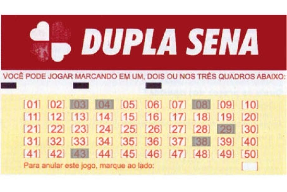 Com apenas uma aposta da Dupla-Sena, o apostador tem o dobro de chances de ganhar. São dois sorteios por concurso e ganha quem acertar 3, 4, 5 ou 6 números, tanto no primeiro quanto no segundo sorteio. Basta escolher de 6 a 15 números dentre os 50 disponíveis. Também é possível deixar que o sistema escolha os números (Surpresinha).