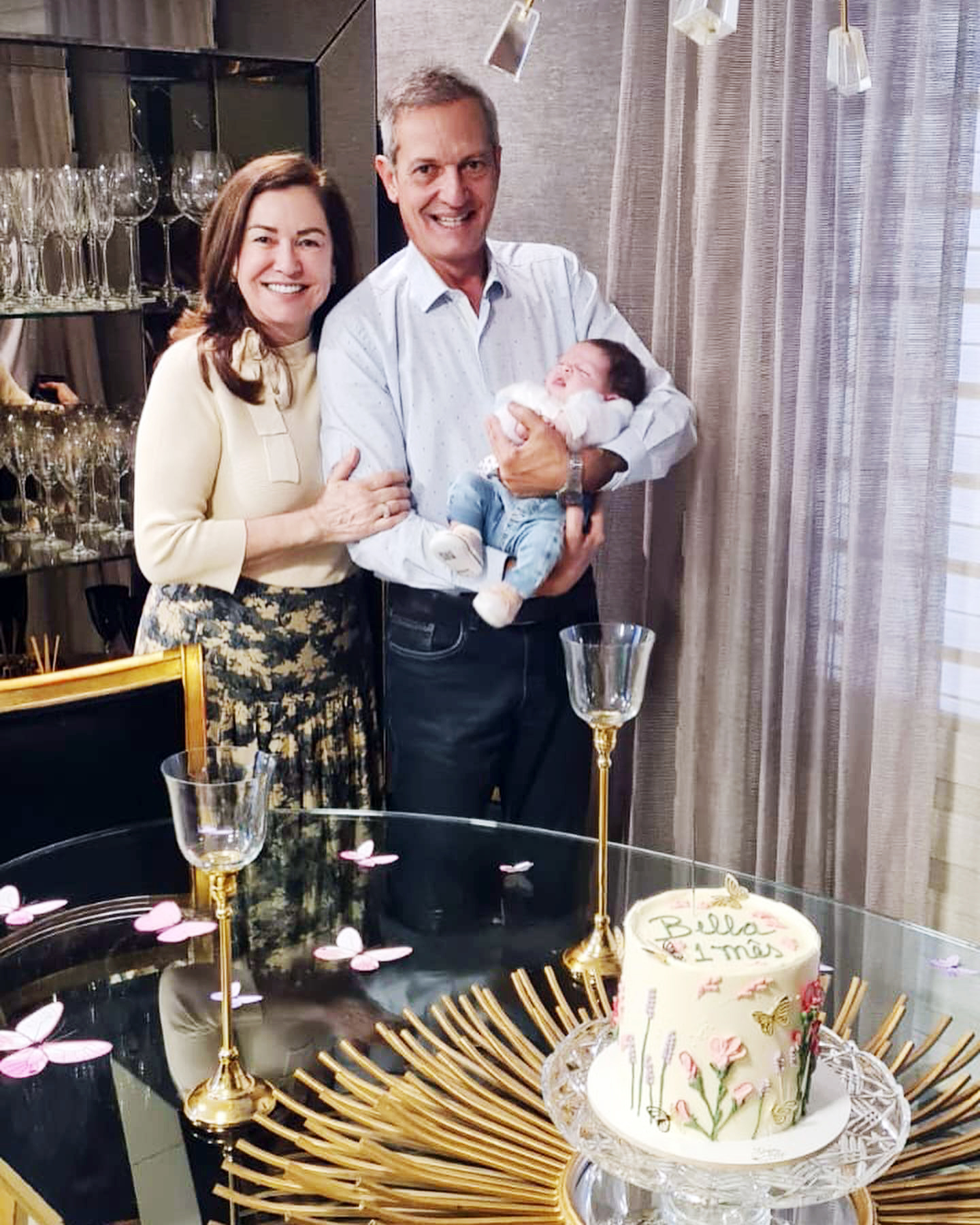 Diná e Paulo Alvares, estreando na corujice com a neta Bella