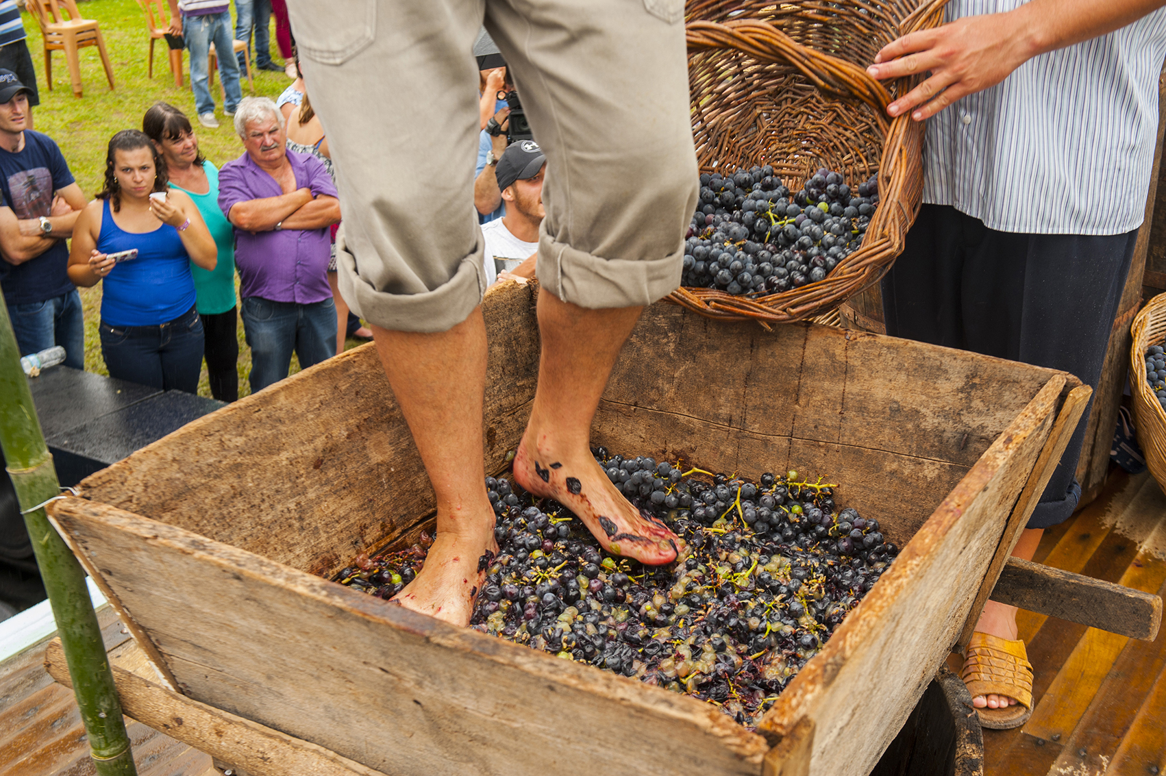 A Pisa Coletiva de Uva está sendo atração, pela primeira vez, na 8ª Festa de Abertura da Vindima, em Monte Belo do Sul, na Serra Gaúcha, que foi aberta ontem e vai até o dia 28. A prática, tão milenar quanto o vinho, foi trazida pelos italianos, que introduziram a vitivinicultura na região quando chegaram, a partir do século 19.