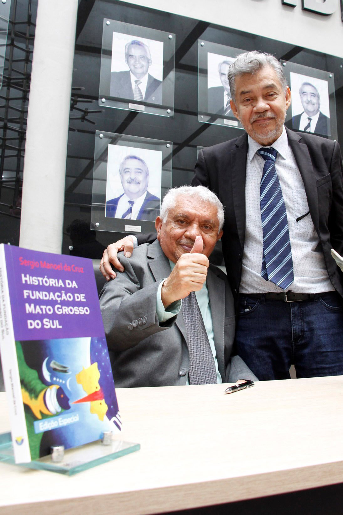 Foto: Wagner GuimarãesO ex-deputado, escritor e cientista político Sergio Manoel da Cruz e o jornalista Fausto Brites, quando do lançamento da publicação “História da Fundação de Mato Grosso do Sul”, na quarta-feira (10), na Assembleia Legislativa de MS. O ex-parlamentar e autor da obra, que também é jornalista de formação, revela os bastidores do movimento separatista até a criação do Estado. O posfácio é assinado pelo presidente da Assembleia, deputado Gerson Claro, que foi professor de História.