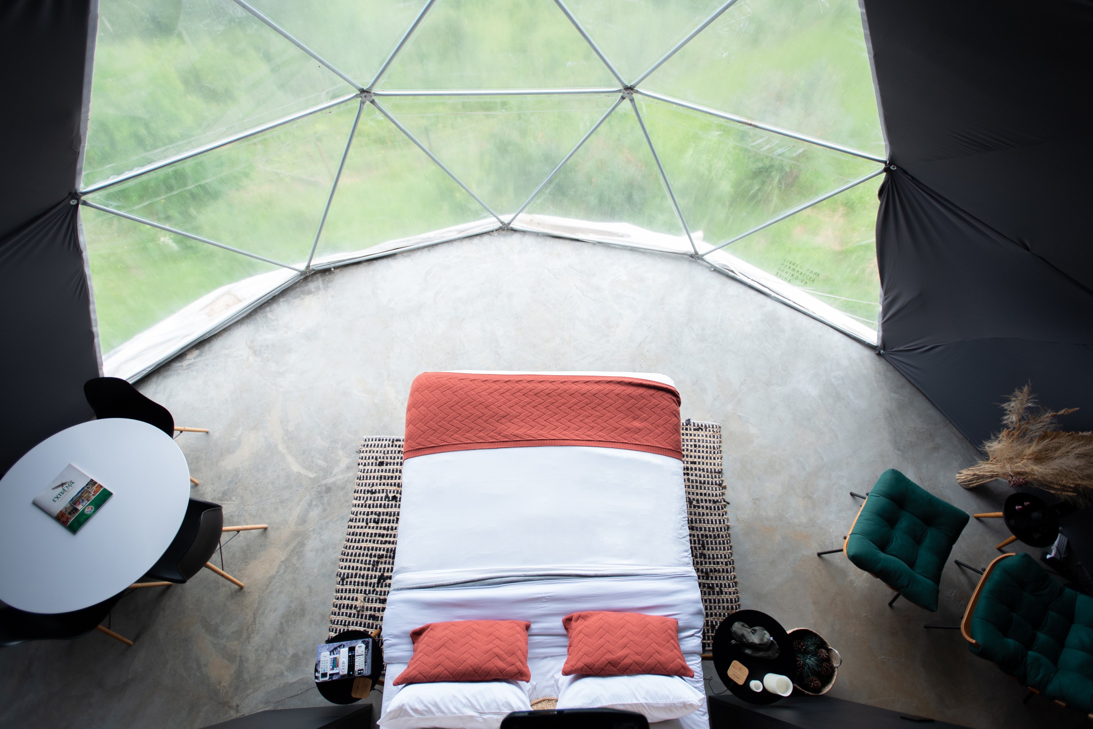 Entrada da acomodação do Zibá - Domo Geodésico e também uma casa inteligente - DivulgaçãoOs sócios optaram por uma obra limpa, com baixo nível de resíduos sólidos e no interior deram novos usos a materiais que seriam descartados. Onde antes era pastagem de gado, hoje eles deixaram que árvores nativas crescessem naturalmente com o objetivo de formar uma área preservada de Mata Atlântica.