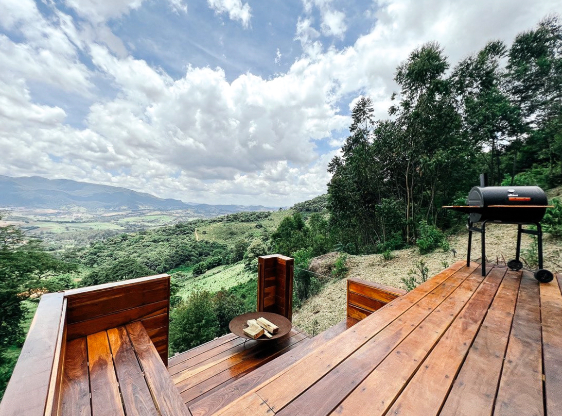 Detalhes da acomodação - DivulgaçãoCom fabricação própria, o Zibá tem área de circulação 360o em seus 60m2 com cozinha gourmet completa, banheiro com aquecedor de toalhas, cama queen no quarto principal e também no mezanino, ambos com vista para as montanhas acomodando de 2-4 hóspedes confortavelmente. Deck externo com spa, fire pit, churrasqueira e wi-fi de uso exclusivo e privado para cada acomodação.