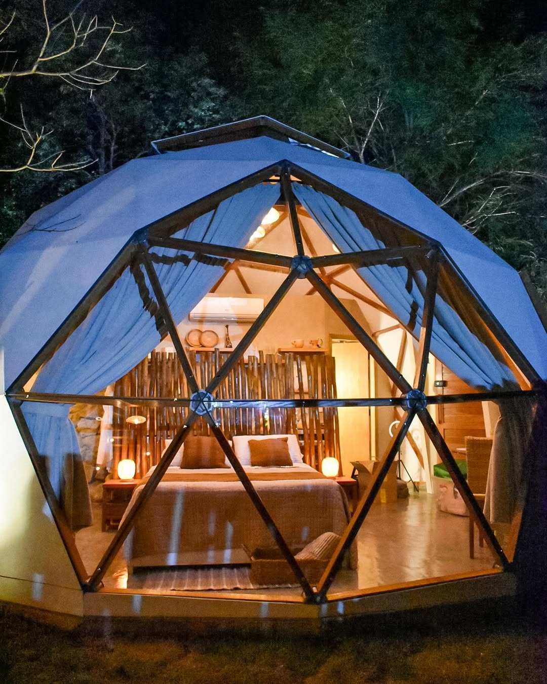 Com o diferencial de ser o primeiro domo geodésico de Mato Grosso do Sul, a cabana está localizada aos pés do Morro do Paxixi. O conceito do Domo Okawando encanta, promovendo uma imersão única inspirada na arquitetura sagrada africana.